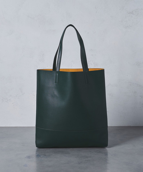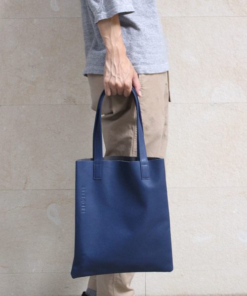 サイドにさりげなく入ったロゴ押しがポイントになった、レザートートです。